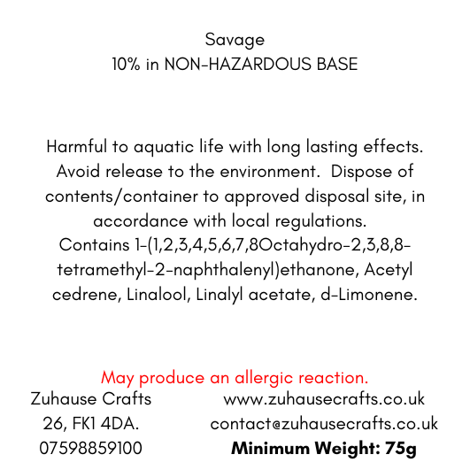 Our Savage wax melt is similar in scent to the well known men's aftershave. A blend of Radiant top notes burst with the juicy freshness of Reggio di Calabria Bergamot. Ambroxan, derived from precious ambergris, unleashes a powerfully woody trail. It is an act of creation inspired by wide-open spaces.
