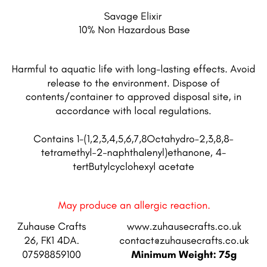 Our Savage Elixir wax melt is a rich masculine fragrance, opening with fresh citrus top notes, accompanied by warm spicy notes of cinnamon, nutmeg and cardamom, the heart dominated by lush lavender leads on to a substantive base of precious amber, sandalwood, patchouli, vetiver and liquorice.