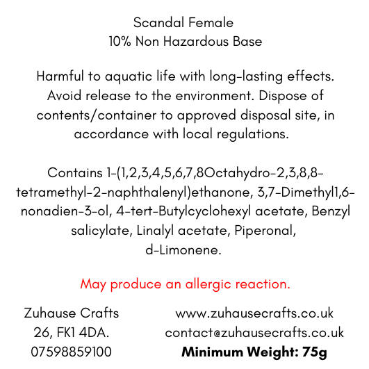 Our Scandal Female wax melt is similar in scent to the Jean Paul Gaultier perfume 'Scandal'. A warm intoxicating fragrance opening with fresh citrus juicy notes green mandarin sprinkled with peach and coconut leading to a contrasting heart of gardenia, ylang ylang and jasmine finishing with an indulgent gourmand trail of golden honey, sweet vanilla and amber with patchouli notes, rounded with powdery musks.