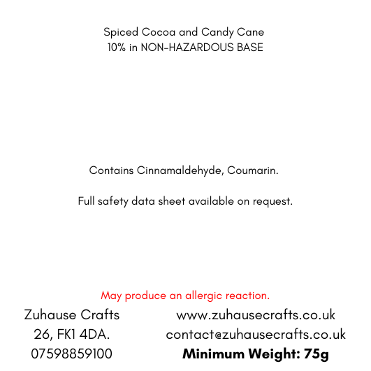 Our Spiced Cocoa & Candy Cane wax melt is a sweet and enticing fragrance with notes of creamy cocoa alongside warming spices, contrasted by cooling mint notes reminiscent of candy canes, with nuances of rich biscuit.