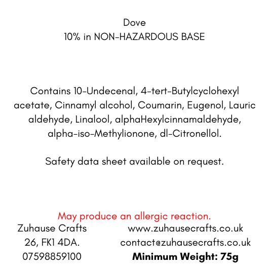 Our White Dove wax melt is inspired by a well known Soap. A clean fresh scent with a combination of white flowers, rose, lily of the valley and Tunisian sandalwood.
